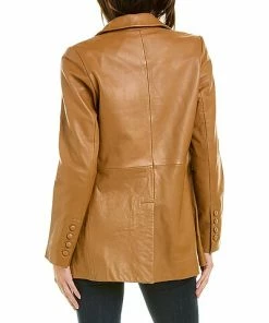 - Donna Leather Vest in mocha with faux fur trim and lining, two zippered front pockets, and belted hem