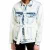 - Design details: spread collar, three front zippered pockets, front coin pocket, zippered cuffs, belted hem