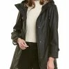 - Design details: spread collar, three front zippered pockets, front coin pocket, zippered cuffs, belted hem