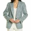 - Warren Blazer in fern with notched lapel, left chest pocket, two front flap pockets, button accents at cuffs and center vent at back hem
