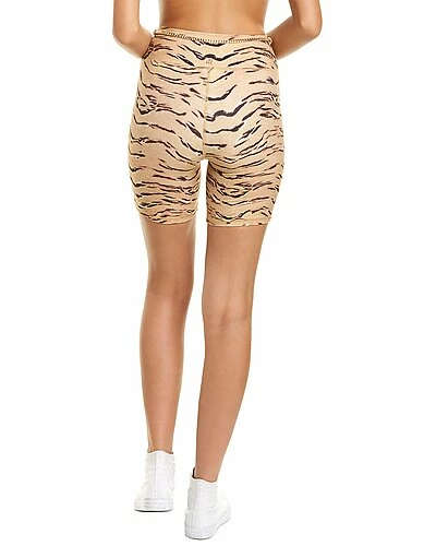 - Chain Bike Short in tan with elasticized waistband with removable gold-tone chain