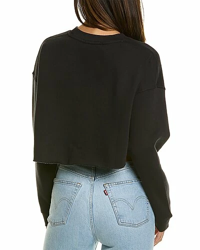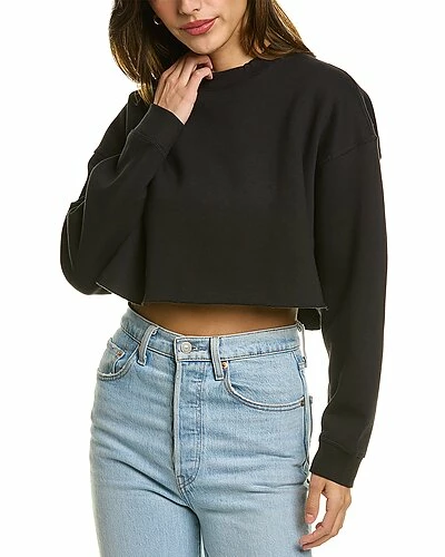 - Solid Cropped Sweatshirt in black with crewneck, dropped-shoulder sleeves and cropped hem