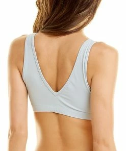 - V-Neck Bra Top in pearl blue with V-neck and ribbed trim