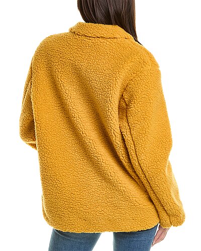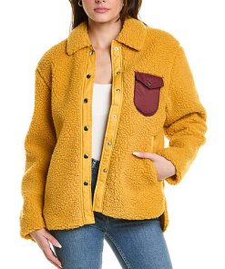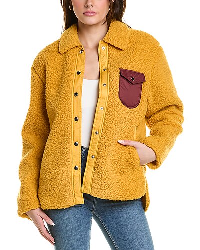 - Elliot Sherpa Shirt Jacket in mustard with sherpa fabric, spread collar and chest pocket