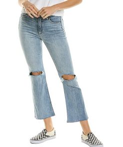 - Nina High-Rise Ankle Flare in Seabrook with belt loops, whiskering and fading details, sashed knees, raw edge hem, and classic five-pocket styling