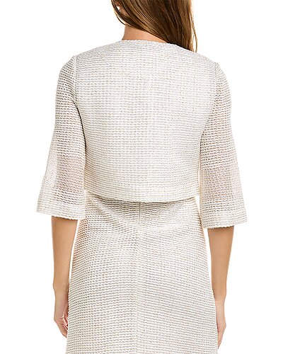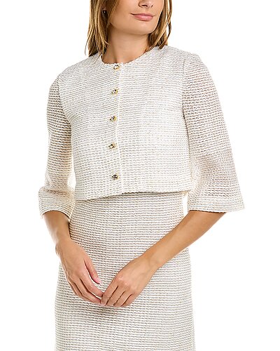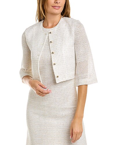 - Stripe Knit Cardigan in white multicolor with metallic knit design and 3/4-length sleeves