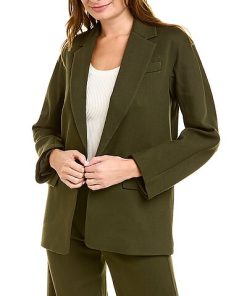 - Blazer Coat in Tuscan olive with notched lapel, left chest pocket and two front flap pockets