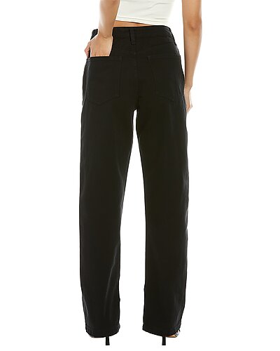 - Mom Slit Straight in black with belt loops, faded design, split hem, and classic five-pocket styling